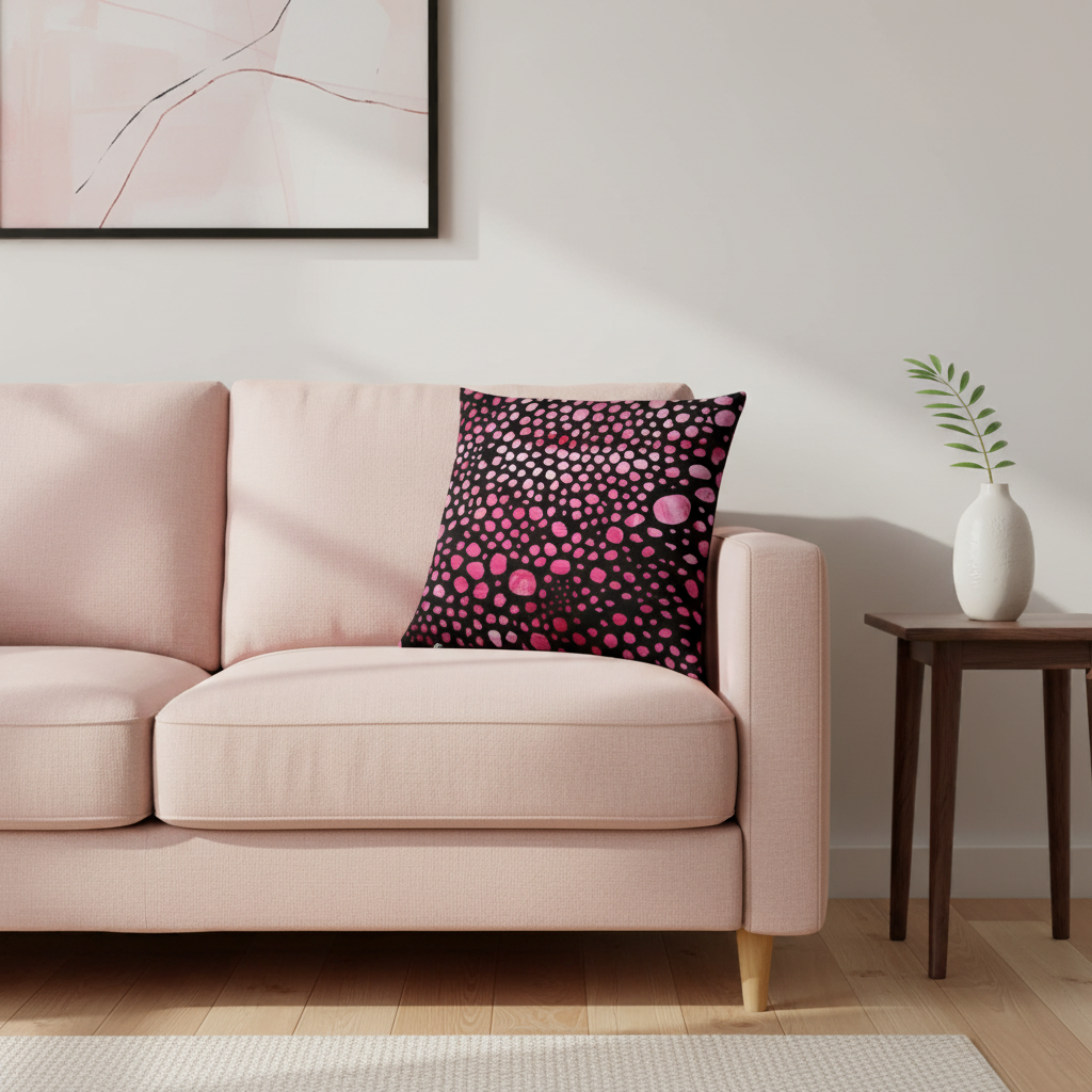 On the couch underneath your PINK acrylics and oil painting. Feathers or polyester inside. Velvet outside or another 5-fabric option. Our beautiful custom-made cushion is soft, plump, luxurious. The soft Velvet fabric is almost impossible not to stroke, and when you do, you won't want to stop. A great gift. Create a unique look for your couch of bed. The heart shape zipper tab adds an extra touch of cuteness to this already attractive and pinkelicious cushion.